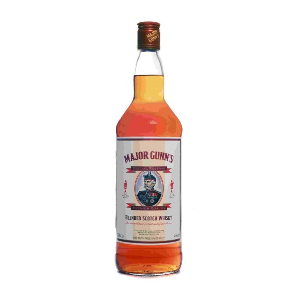 Major Gunn's blended Scotch whiskey. Named after a well known soldier in Scottish history Major Gunn was a descendant of the Chief of the Clan Gunn who were based in Caithness from the 12th to the 15th centuries.